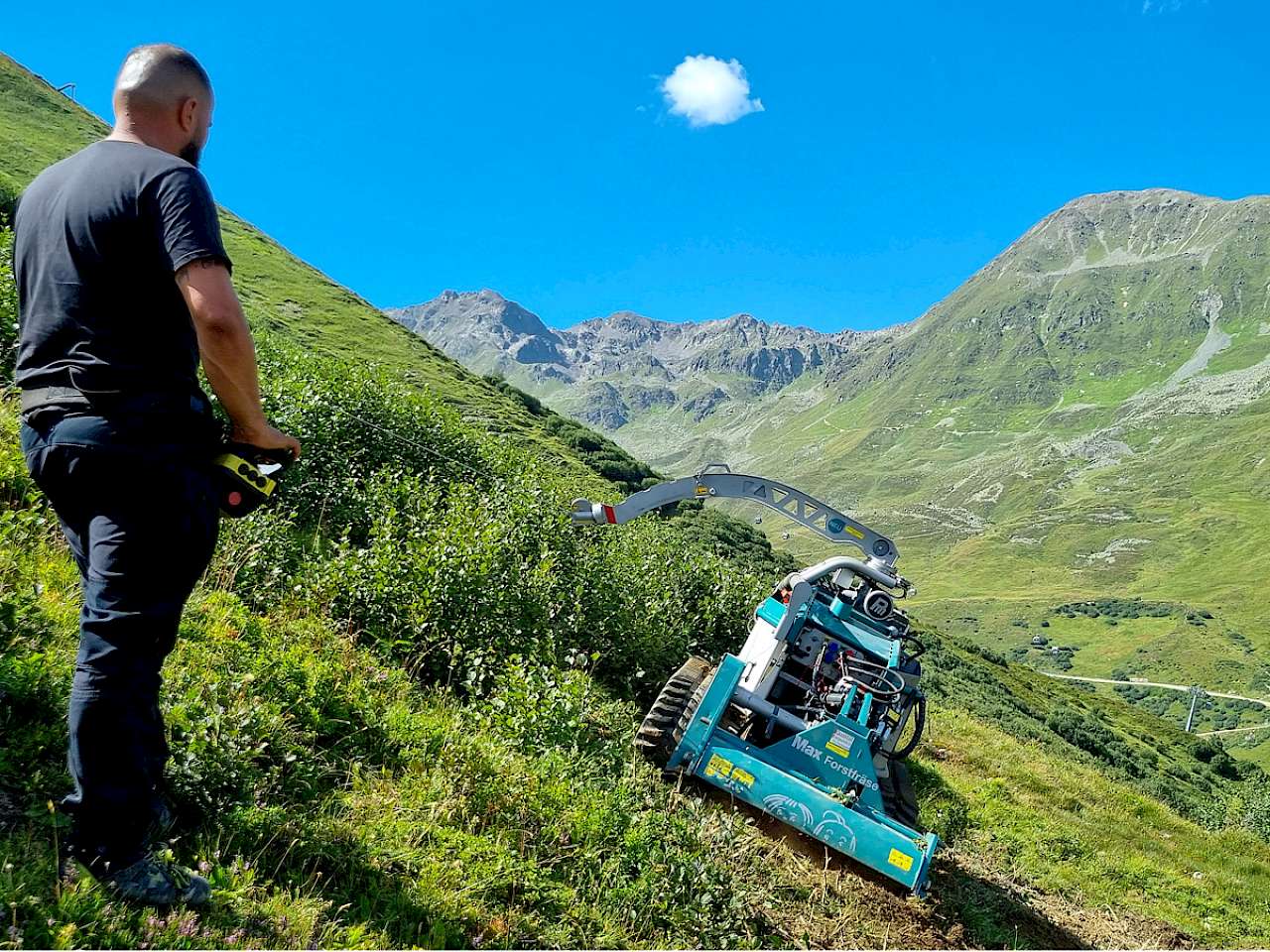 Die Traktionswinde ermöglicht das Arbeiten mit der ferngesteuerten Geräteträger Moritz an bisher unzugänglichen Stellen. Die Steuerung erfolgt automatisch über den Fahrhebel der Raupe, die andere Hand bedient das Anbaugerät. Der Arm der Winde schwenkt um 360 °. Somit ist einfaches Manövrieren am Hang – längs oder quer – möglich. Die Seilkapazität beträgt 1.100 m.