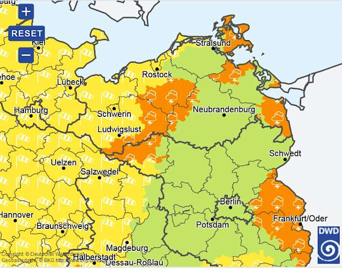 Die ortsgenauen Warnungen sind im Internet unter www.dwd.de verfügbar. Anfang August werden sie auch den zurzeit 2,7 Millionen Nutzern der Warn-Wetter-App des DWD angeboten.