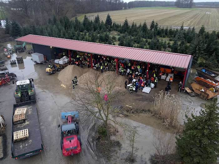 Hierzu zählten u.a. die vielen Mitglieder der Freiwilligen Feuerwehren, ebenso wie das THW und z.B. rund 1.000 Einwohner der Samtgemeinde, die unermüdlich in Wechselschichten bei der im Bauhof eingerichteten Sandsack-Befüllung tätig waren. Die Solidarität und die Unterstützung sei gigantisch gewesen, kann sich der Bauhofleiter auch eine Woche später immer noch sichtbar begeistern. Nicht zu vergessen sei dabei sein eigenes Team, ebenso wie örtliche Bau- und Fuhrunternehmen sowie zahlreiche Landwirte und Lohnunternehmer, die mit ihrer eigenen Arbeitskraft, ihren Mitarbeitern und natürlich mit schwerem Gerät, wie Traktoren, Ladetechnik und Tieflader, die Logistik dieser immensen Sackstückzahl bewältigten.