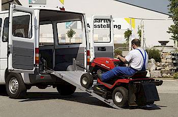 Die RRK. Rampe ist fest im Fahrzeug montiert und soll eine besonders komfortables Be- und Entladen durch leichtes Ausklappen mittels Gasdruckfeder ermöglichen. Während der Fahrt steht die Rampe in senkrechter Position und wird durch Sicherungen gehalten. Dank integrierter Gummipuffer entstehen laut Hersteller keine Klappergeräusche. Die Verladeschiene wird in unterschiedlichen Längen und Breiten, sowie mit verschiedener Tragkraft hergestellt. Auch Sonderanfertigungen sind auf Anfrage möglich.