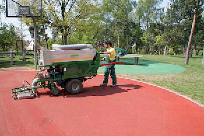 Sandmaster, bisher bekannt aus dem Bereich der Spielsandreinigung, hat seine Kompetenzen erweitert. Seit diesem Jahr wird nicht mehr nur der Sand gereinigt, sondern auch sämtliche Kunststoffböden wie z.B. Fallschutzplatten und Gummigranulatböden auf kleineren Flächen wie Spielplätzen und Kleinspielfelder.