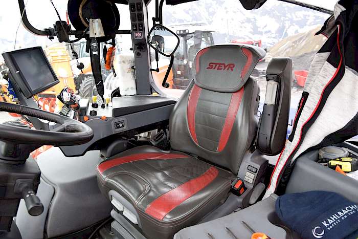Einen Neuzugang verzeichnet auch die Reihe Terrus: Der Steyr Terrus CVT verfügt über eine Frontzapfwelle mit zwei Geschwindigkeiten (1000/1000 ECO) und kann mit Reifen bis zu 2,05 m Durchmesser gefahren werden. Der 6-Zylinder-Motor bietet eine Leistung von 250 PS, weshalb der Terrus CVT sich gut für Transportarbeiten eignet. Doch auch der Einsatz für Räumarbeiten im Winterdienst ist möglich, wie Steyr auf dem Großglockner zeigte. Als besonderen Komfort für den Fahrer stellt der Hersteller die leise gefederte Kabine mit 69 dbA heraus.