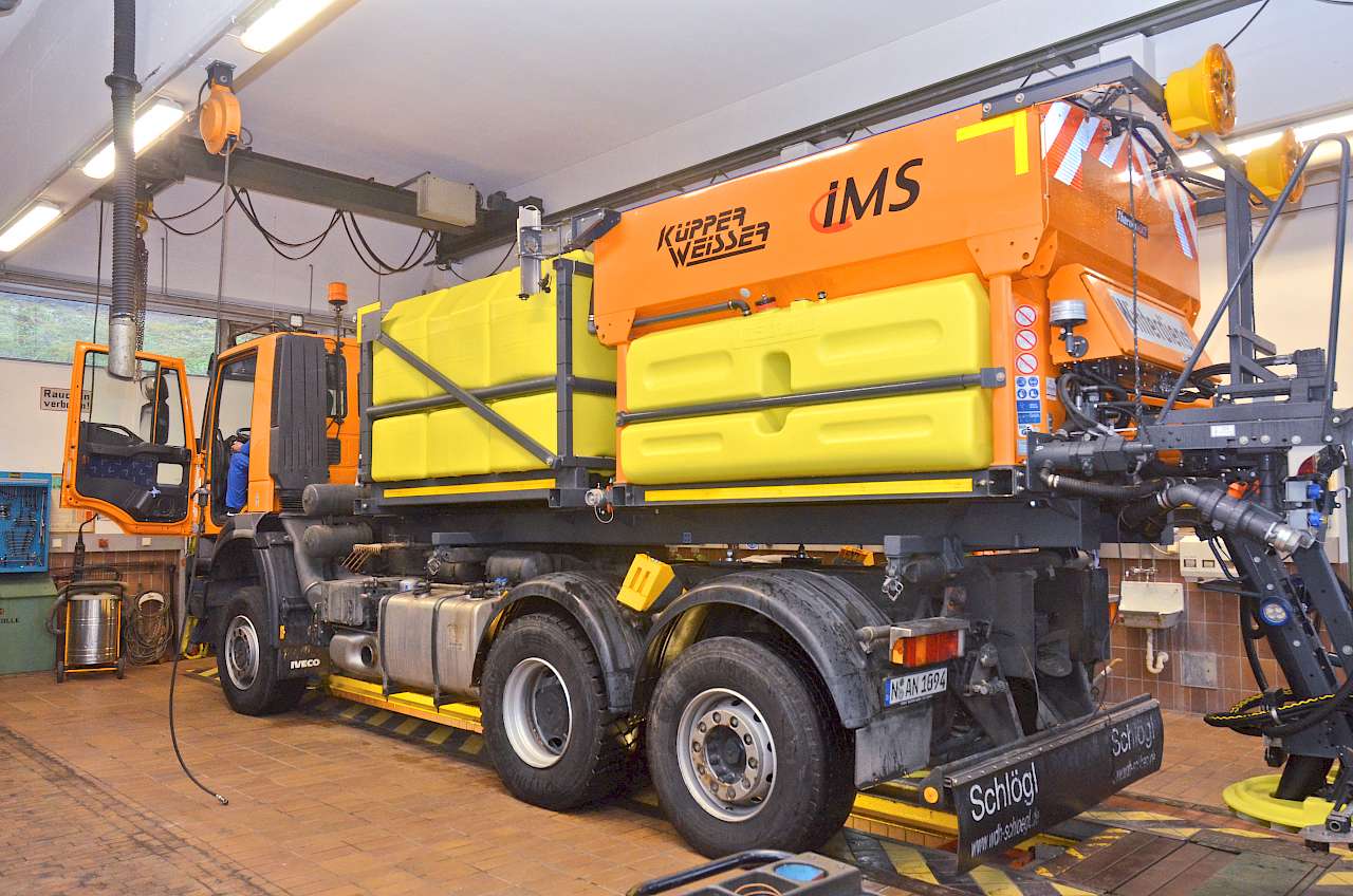 Völlig selbstverständlich ist für ihn übrigens auch die Dokumentation der durchgeführten Arbeiten via GPS-Technik. Auf diese Weise werden Zeiten, Fahrstrecken sowie Streubreiten und -mengen erfasst. „Das haben wir schon vor zehn Jahren umgestellt, und somit ist die Erfassung sowohl für die Salz- als auch für die Soleausbringung exakt möglich“, berichtet er. Eine Aufzeichnung per Papier sei nach seiner Einschätzung im Ernstfall vor Gericht wertlos. Außerdem sieht er darin eine deutliche Zeitersparnis und Entlastung seiner Mitarbeiter. „Sie sind im Ernstfall teilweise 8-10 h pro Schicht unterwegs. Dann hinterher noch Papiere ausfüllen zu müssen, wenn der Fahrer allein unterwegs war und keinen Beifahrer hatte, halte ich für nicht zumutbar“, so seine Überzeugung. „Und auch für die Abrechnung mit externen Dienstleistern bietet GPS viele Vorteile.“
