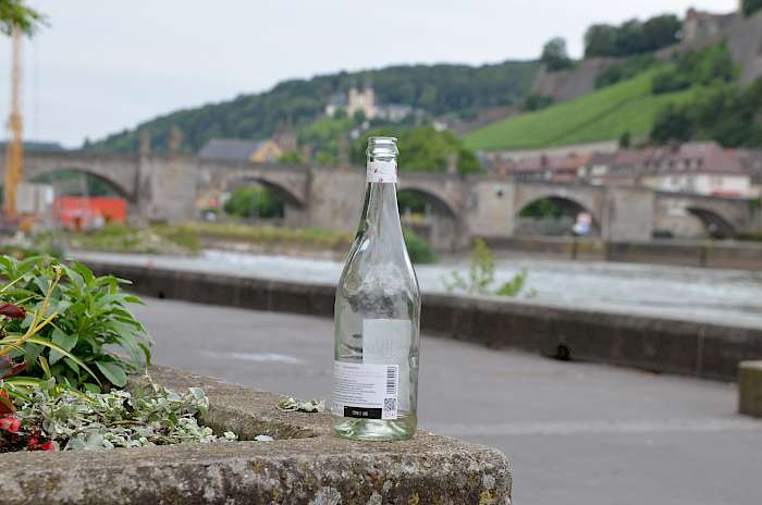 Wir sind am Rande des Zuständigkeitsgebiets am Westufer des Mains unterhalb der Alten Mainbrücke angekommen. Dieser Bereich war bis vor ein paar Jahren eine echte Problemzone. Die direkt am Wasser in unmittelbarer Nähe zur Altstadt gelegene Grünfläche wurde von sehr vielen Bewohnern als Ort für Grillfeiern oder nächtliche Partys genutzt. Dementsprechend groß waren die zurückgelassenen Müllberge und besonders ärgerlich: die vielen zerbrochenen Flaschen. Es kam jedoch erst Bewegung in die Sache, als sich zunehmend Anwohner über den Lärm beschwerten, den die Feiernden verursachten. So beschloss der Stadtrat ein absolutes Alkoholverbot in diesem Bereich. Anja Schlereth erklärt: „Diese Maßnahme zeigte erst nach und nach seine Wirkung. Zunächst wurden Schilder aufgestellt. Das allein reichte jedoch leider nicht: Die neue Regelung musste mit Hilfe der Polizei und des Ordnungsamtes streng durchgesetzt werden. Die Gruppen, die zuvor auf der Fläche gefeiert haben, sind zu anderen Orten ausgewichen und zumindest in diesem Bereich sank das Aufkommen des Mülls.“ Völlig frei von Vermüllung ist jedoch auch diese Fläche nicht – das zeigen die herumliegenden Pappbecher, Essensboxen oder Zeitungspapier. Das Alkoholverbot ist also nur eine Teillösung.