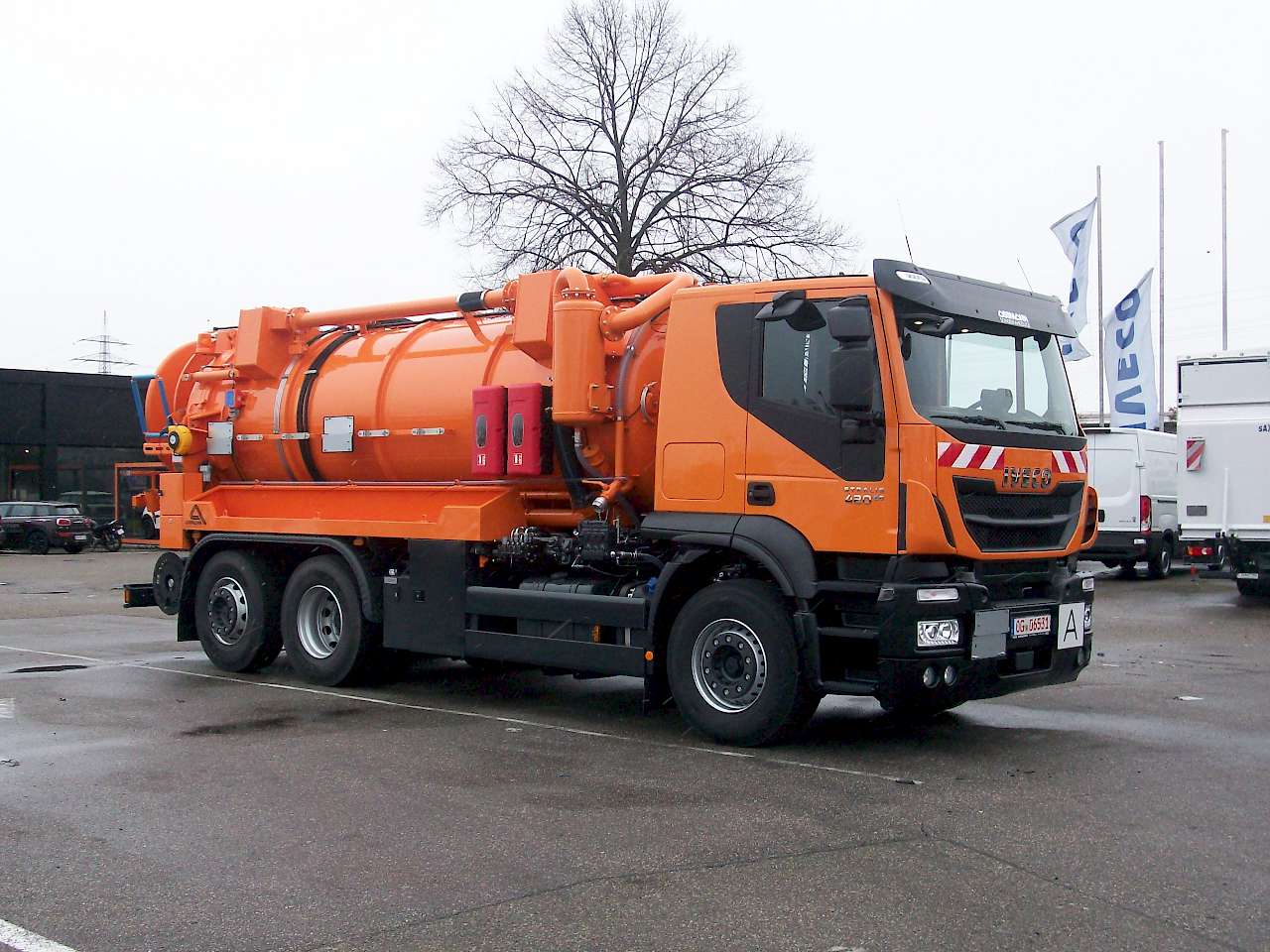 Das zuletzt angeschaffte Fahrzeug ist ein Iveco Stralis AT 260S42/PS, ein Dreiachser mit Fernfahrerhaus und gelenkter Nachlaufachse zum Absaugen aller möglichen Flüssigkeiten von Speisefetten bis zum Öl aus Abscheidern von Tankstellen oder Produktionsbetrieben. Die Definition des Fahrgestells erfolgte seitens Iveco in enger Abstimmung mit den Bedürfnissen des Kunden und denen des Aufbauers, Fa. Assmann in Lauffen/Neckar. Das Fahrzeug fährt im 200 km Umkreis um den Standort sowohl Autobahn als auch kleine Wege im Hochschwarzwald zu Bauernhöfen, die nicht an ein Abwassernetz angeschlossen sind.