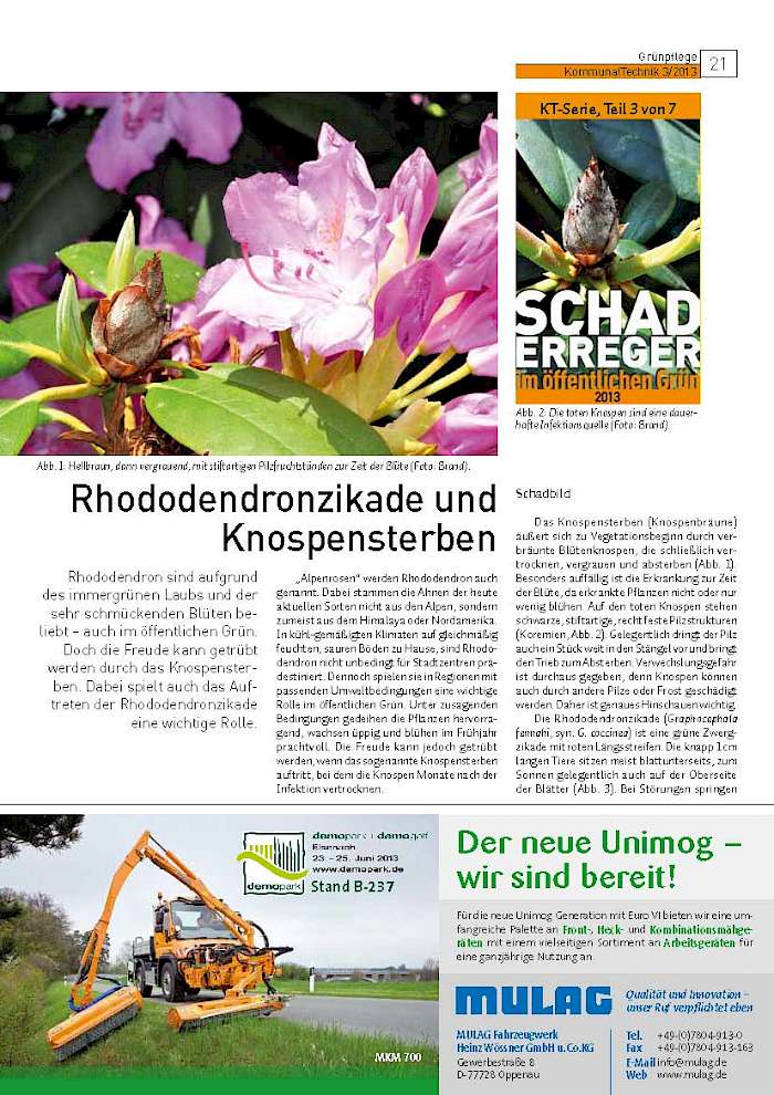 Rhododendron sind aufgrund des immergrünen Laubs und der sehr schmückenden Blüten beliebt – auch im öffentlichen Grün. Doch die Freude kann getrübt werden durch das Knospensterben. Dabei spielt auch das Auftreten der Rhododendronzikade eine wichtige Rolle.