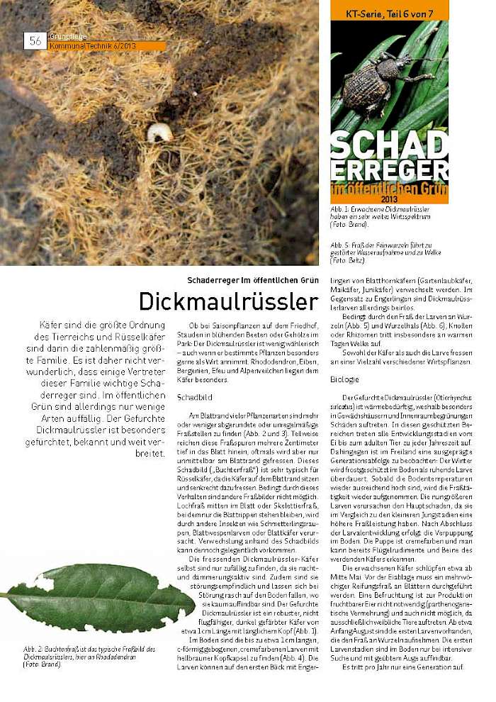 Käfer sind die größte Ordnung des Tierreichs und Rüsselkäfer verwunderlich, dass einige Vertreter dieser Familie wichtige Schaderreger sind. Im öffentlichen Grün sind allerdings nur wenige Arten auffällig. Der Gefurchte Dickmaulrüssler ist besonders gefürchtet, bekannt und weit verbreitet.