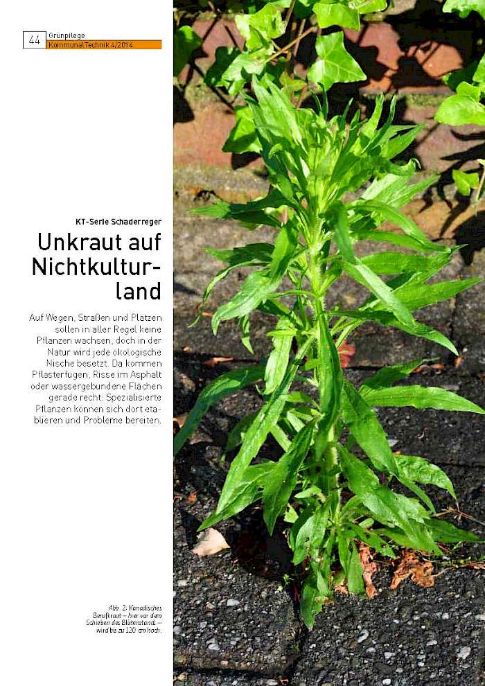 Auf Wegen, Straßen und Plätzen sollen in aller Regel keine Pflanzen wachsen, doch in der Natur wird jede ökologische Nische besetzt. Da kommen Pflasterfugen, Risse im Asphalt oder wassergebundene Flächen gerade recht: Spezialisierte Pflanzen können sich dort etablieren und Probleme bereiten.