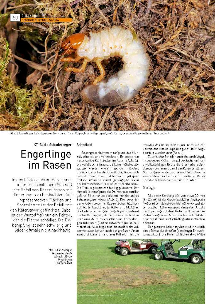In den letzten Jahren ist regional in unterschiedlichem Ausmaß der Befall von Rasenflächen mit Engerlingen zu beobachten. Auf repräsentativen Flächen und Sportplätzen ist der Befall mit den Käferlarven gefürchtet. Dabei ist der Wurzelfraß nur ein Faktor, der die Fläche schädigt. Die Bekämpfung ist sehr schwierig und leider oftmals nicht nachhaltig.