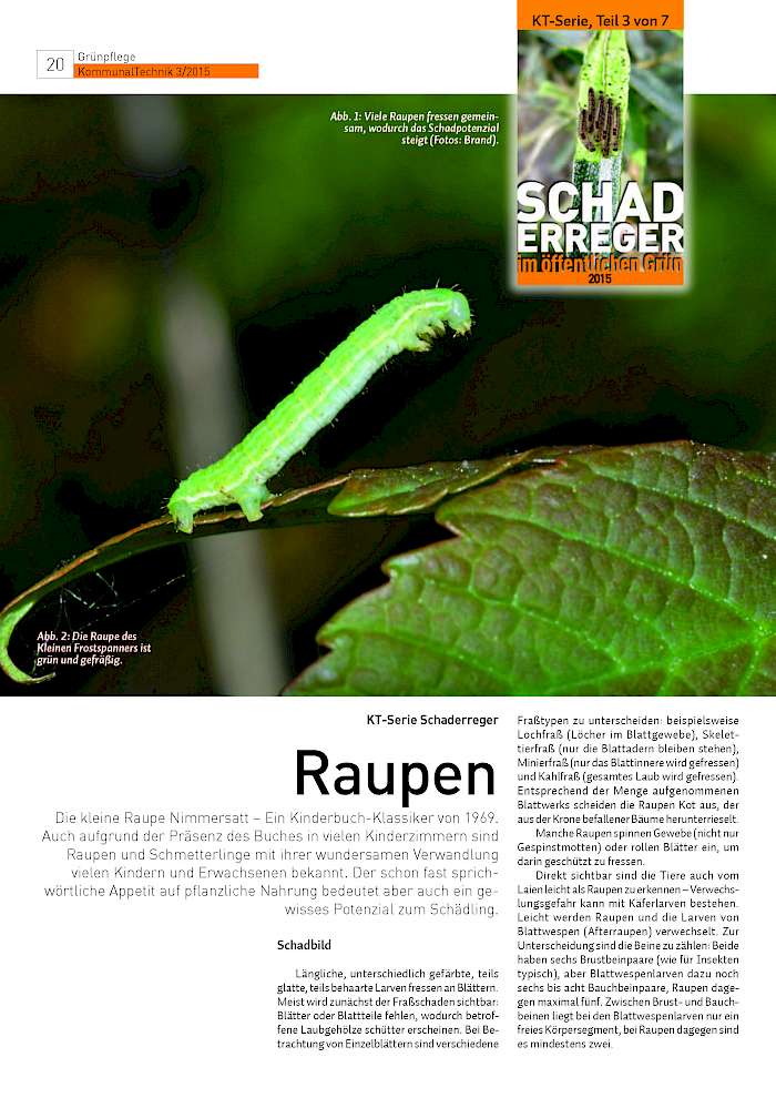 Die kleine Raupe Nimmersatt – Ein Kinderbuch-Klassiker von 1969. Auch aufgrund der Präsenz des Buches in vielen Kinderzimmern sind Raupen und Schmetterlinge mit ihrer wundersamen Verwandlung vielen Kindern und Erwachsenen bekannt. Der schon fast sprichwörtliche Appetit auf pflanzliche Nahrung bedeutet aber auch ein gewisses Potenzial zum Schädling.